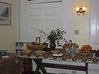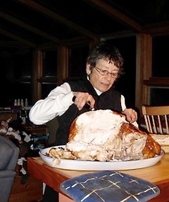 There are the usual requirements for Thanksgiving foods – the turkey, stuffing, mashed potatoes (always Steve’s domain), the mountain cranberry sauce (with a speech about exactly where the cranberries in question had been picked the previous August), and lots and lots of pies.
