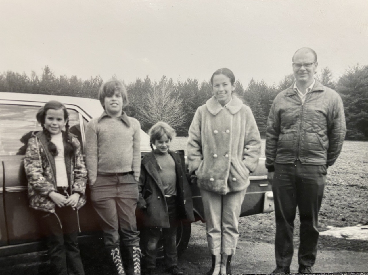 Beginning in 1970, after Charlotte’s death, Anna Haynes invited all of us to Thanksgiving dinner, in addition to the people she had already invited. It was a big group of people. The very dim photo here, taken by Winthrop, isn’t very clear, but shows all 5 of Charlotte’s grandchildren. I don’t know who the boy and girl in the back are.